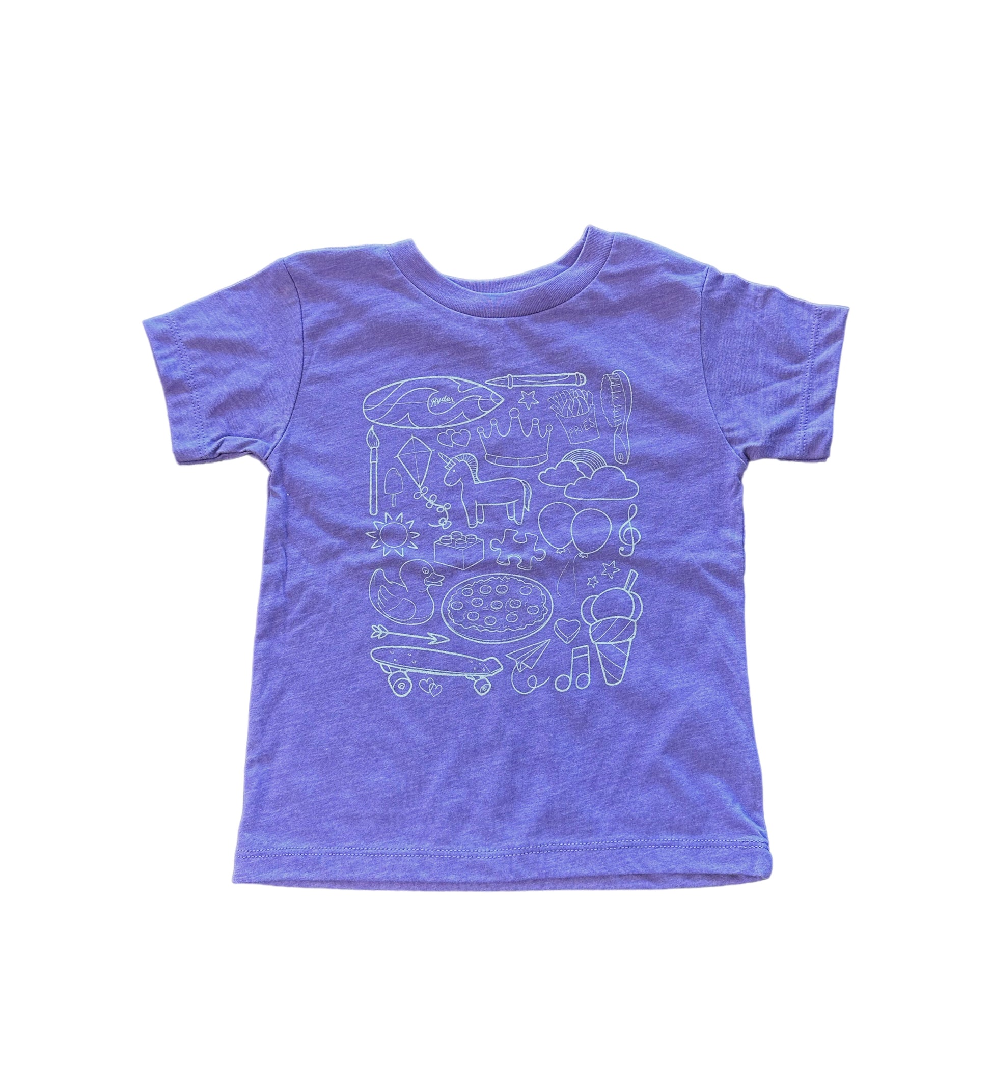 Get your little surfer on the waves of fashion with the RYDER SURF TODDLER TOYS OF THE TRADE PURPLE TEE. This cool toddler t-shirt has everything they need to feel the wind and the waves - toys of the trade, surf-inspired design, and a classic purple color that's sure to make a splash!
